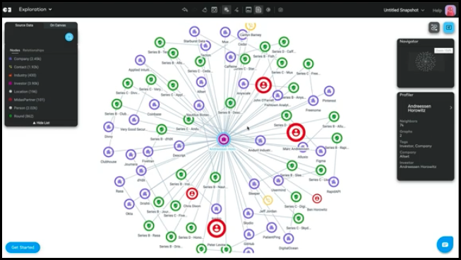 A startup founder is looking for contacts to get an introduction to a targeted investor. A graph of LinkedIn, Crunchbase, and Forbes data points the way.